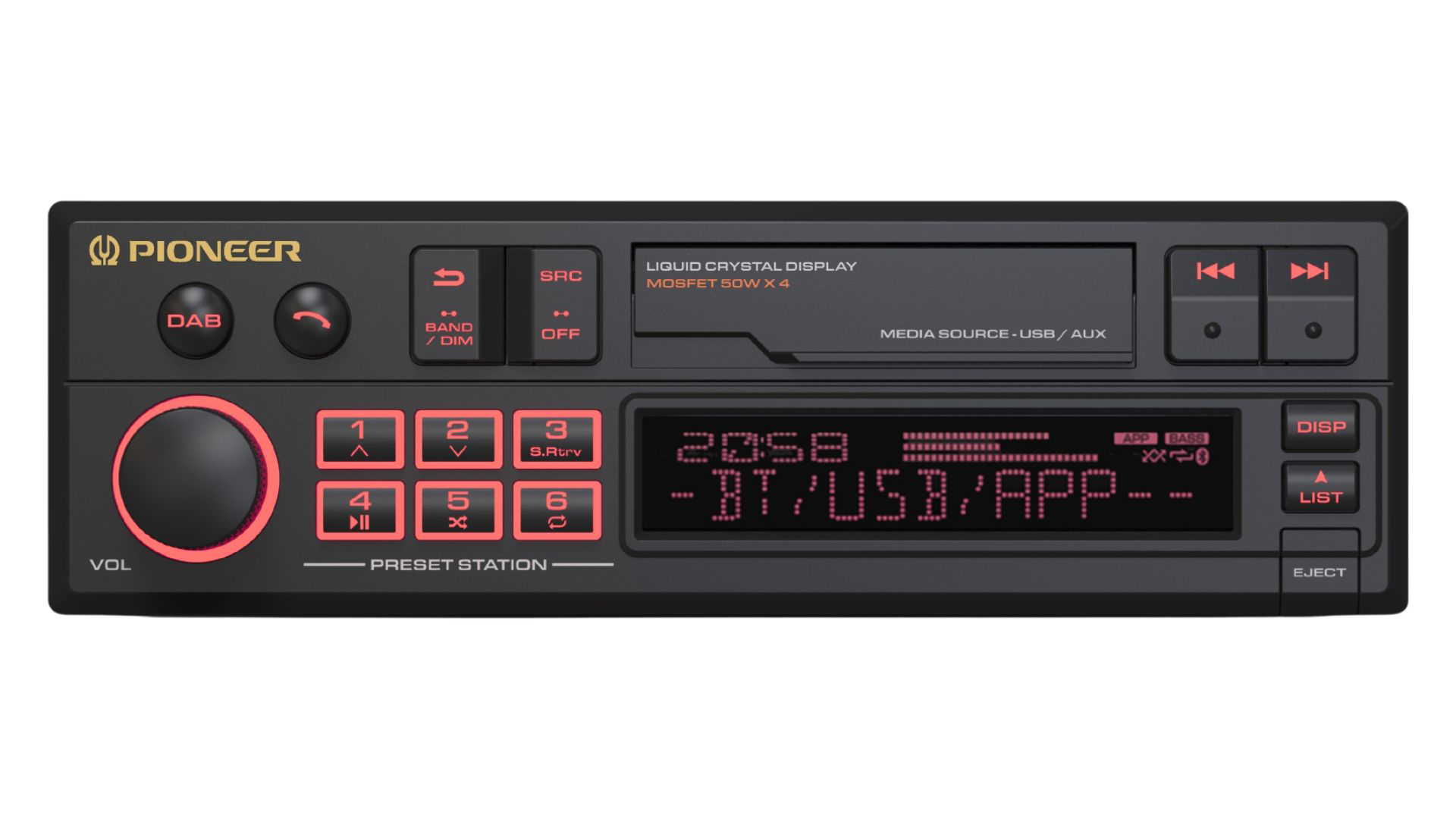 Pioneer SXT-C10PS retro 1DIN automobilio grotuvas su DAB+ ir Bluetooth